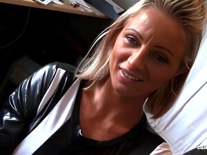 Motorista se vira em torno de seu táxi como ele pega este lindo passageiro loira. Ele é notado seus peitos está pendurado para que seu pênis começa a ferver. Ele não perdeu tempo e a convence a fazer sexo por uma tarifa de táxi gratuita. Sua buceta aperta